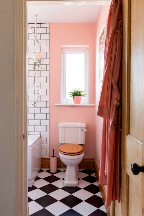 Colores vibrantes como el amarillo, el rosa o el verde alegrarán tu aseo. Mezcla diferentes texturas, utiliza papel pintado especial para baño y ¡decora!